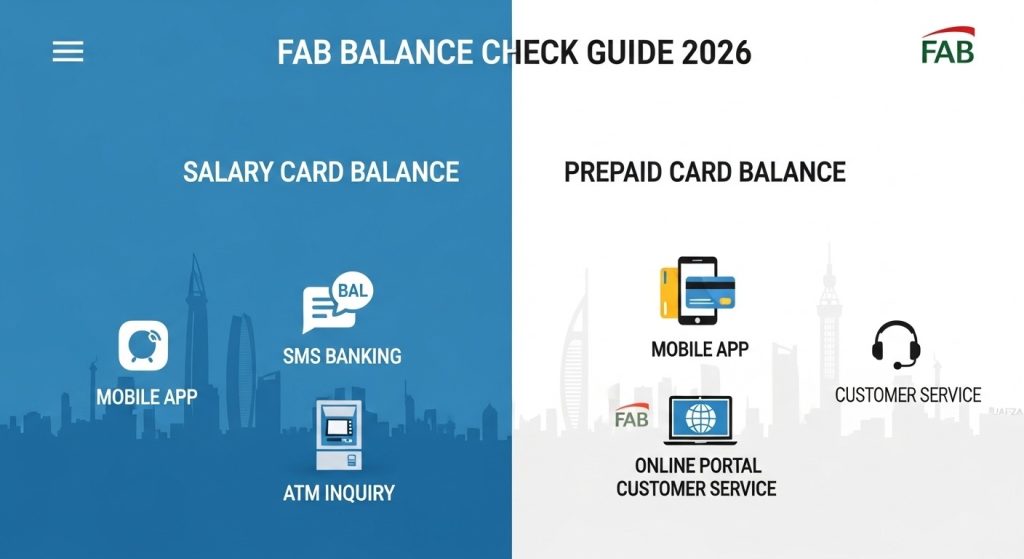 Two types of FAB cards need balance checks. Salary cards. Prepaid cards. Each has its own checking methods. For salary cards, three methods work. Mobile app for speed. SMS for no internet. ATMs for cash access.
